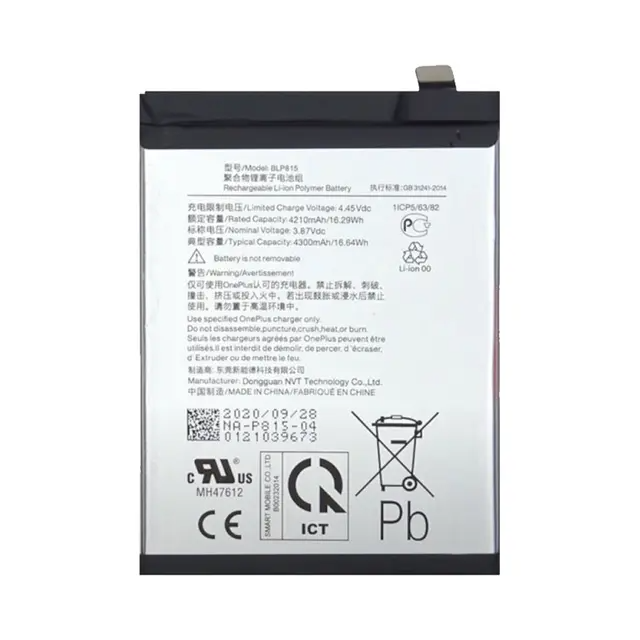 Compatible Li‑Po 4300 mAh battery compatible with OnePlus Nord N10 5G variants; supports advertised wired charging.