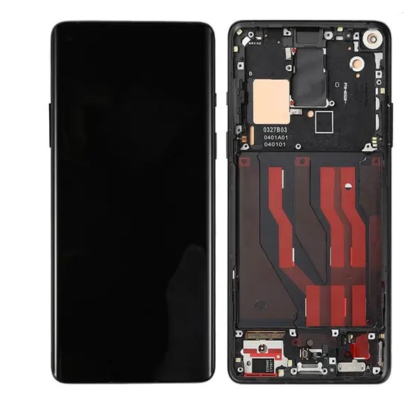 Service-pack complete display with frame for OnePlus 8 IN2010 in Interstellar Glow; replacement module restores touch response and original color finish.