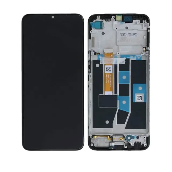 Service-pack complete display with frame for Oppo A16/A16s CPH2269; pre-fitted module restores touchscreen and original housing fit.