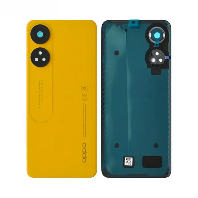 Compatible replacement rear cover for Reno8 T 4G in Orange Sunset including camera lens; restores original color and fit.