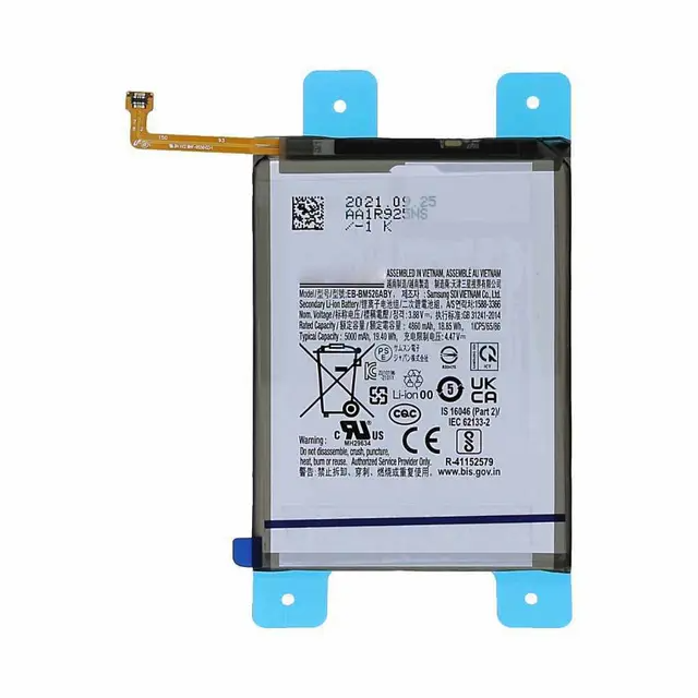 Service-pack Li‑Ion 5000 mAh non‑removable battery compatible with listed Samsung models; supports 25W fast charging, pre-tested module.