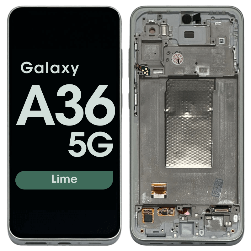 Super AMOLED 6.7" 120Hz 1080x2340 complete display with frame for Galaxy A36 A366B in lime; service pack quality.