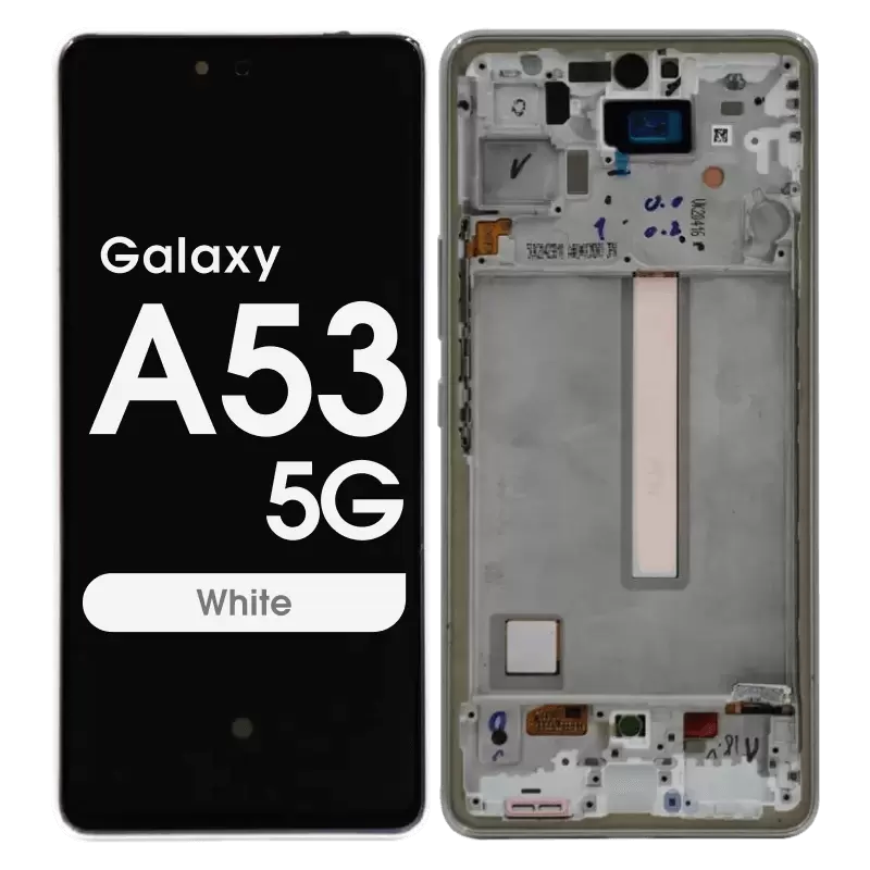 Super AMOLED 6.5" 120Hz 1080x2400 complete display with frame for Galaxy A53 A536B; Gorilla Glass 5; service pack quality.