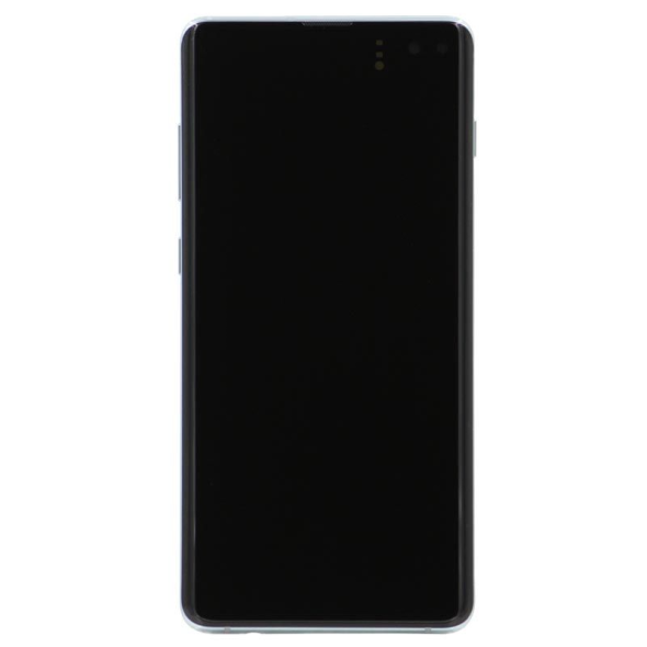 Dynamic AMOLED 6.4" 1440x3040 complete display with frame for Galaxy S10+ SM‑G975F in prism green; service pack quality.