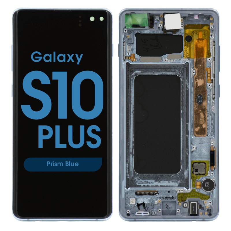 Complete display assembly GH82‑18834C / GH82‑18849C for Galaxy S10+ SM‑G975F in prism blue; service pack quality.