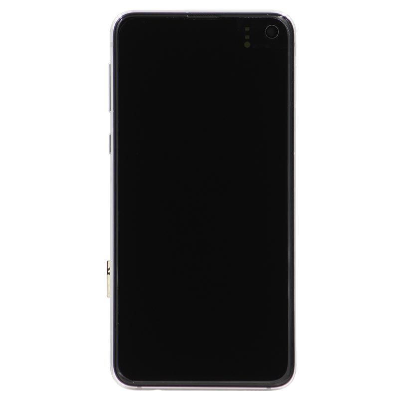 Super AMOLED Plus 5.8" 1080x2280 complete display with frame and battery for Galaxy S10e SM‑G970F in prism white; service pack quality.