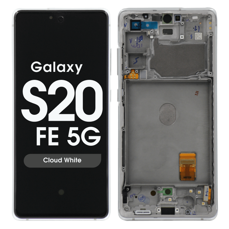Super AMOLED 6.5" 1080x2400 120Hz complete display with frame for Galaxy S20 FE; cloud white; service pack quality.