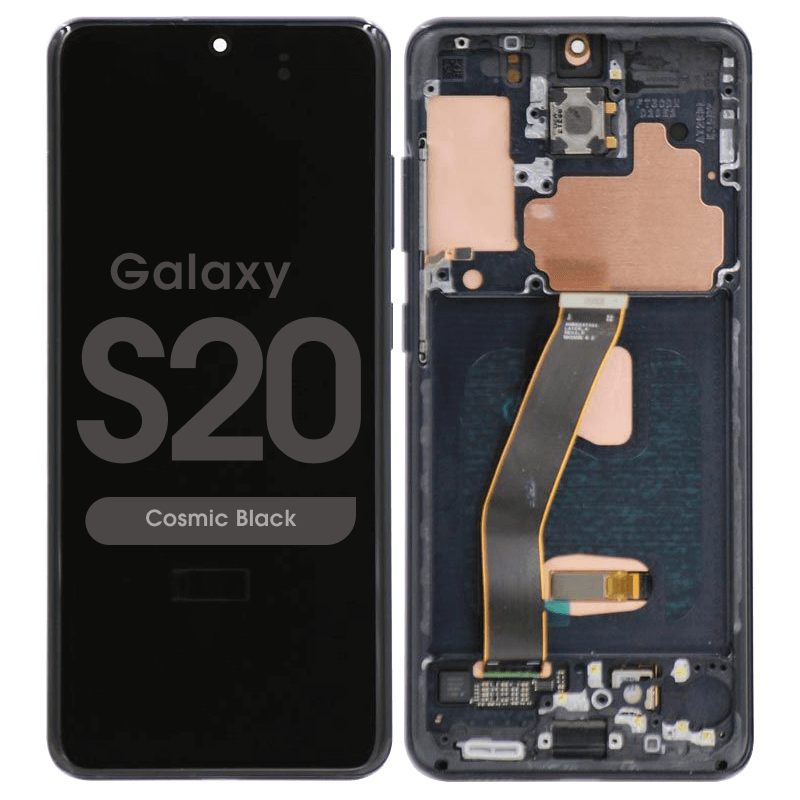 Replacement display and digitizer with frame for Samsung Galaxy S20 (G980F) in Cosmic Grey. Features Soft‑OLED technology for vivid visuals and precise fit, making it ideal for professional repairs.