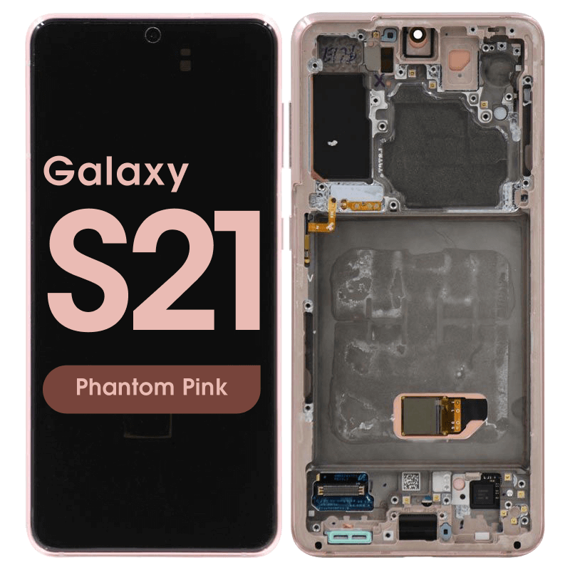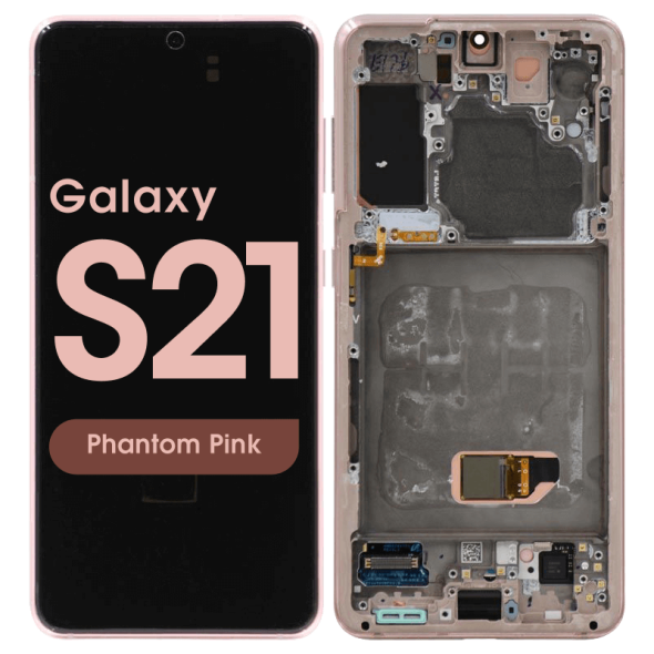 Dynamic AMOLED 2X complete display with frame for Galaxy S21 5G SM‑G991B in phantom violet; service pack quality.