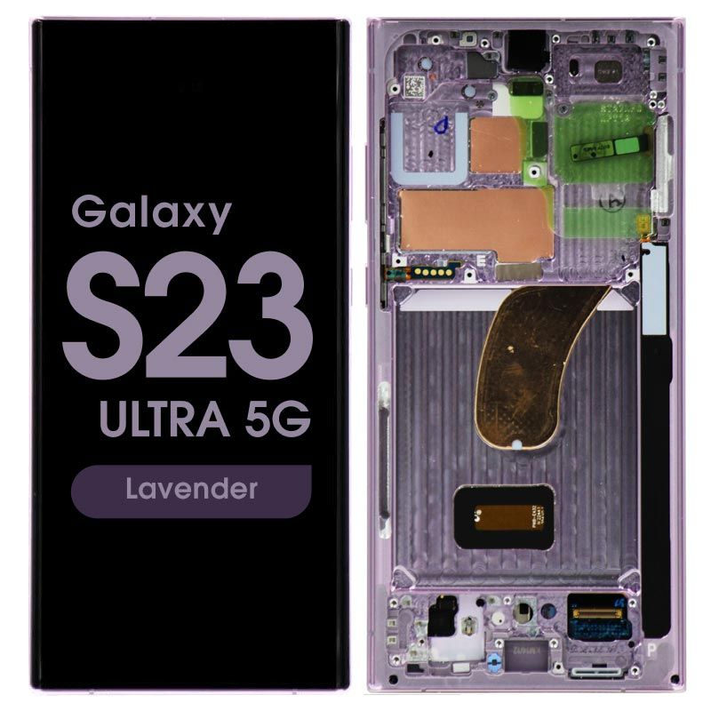 Dynamic AMOLED 2X 6.8" 1440x3088 complete display with frame for Galaxy S23 Ultra SM‑S918B in lavender; Gorilla Glass Victus 2; service pack quality.