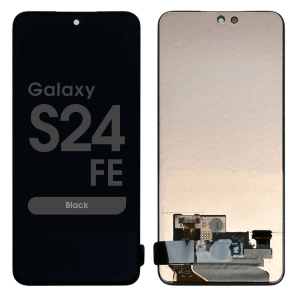Dynamic AMOLED complete display with frame pre‑assembled for Galaxy S24 FE SM‑S721B in black; service pack quality.