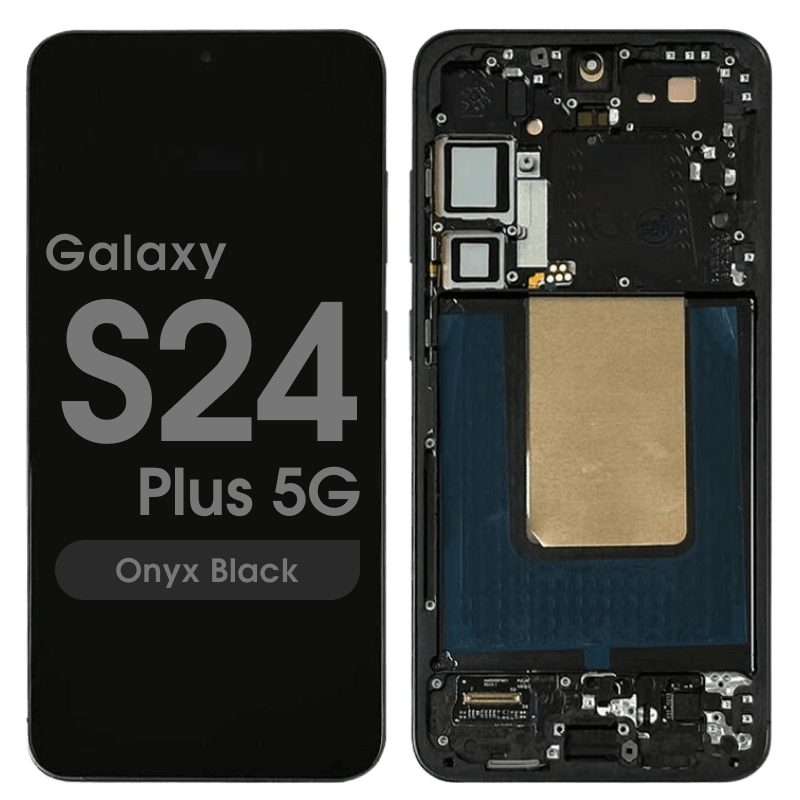 Dynamic LTPO AMOLED 2X complete display with frame pre‑assembled for Galaxy S24 Plus SM‑S926B in onyx black; service pack quality.