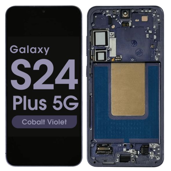 Complete display assembly GH82‑33412C with frame and battery for Galaxy S24 Plus SM‑S926B in cobalt violet; service pack quality.