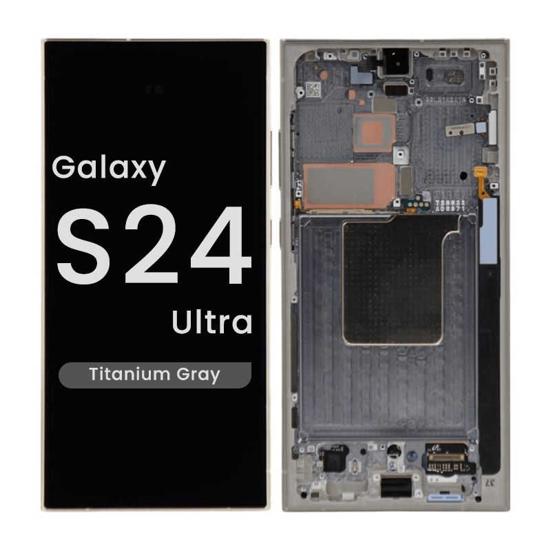 Complete display with frame for Galaxy S24 Ultra SM‑S928B in titanium gray; pulled condition.