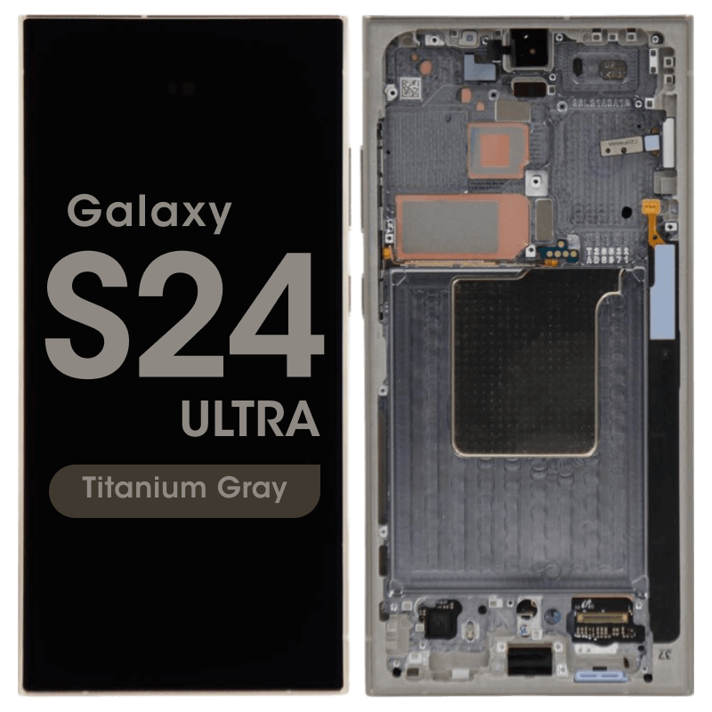 Complete Dynamic LTPO AMOLED 2X display with frame pre‑assembled for Galaxy S24 Ultra SM‑S928 in titanium grey; service pack pre‑assembled.