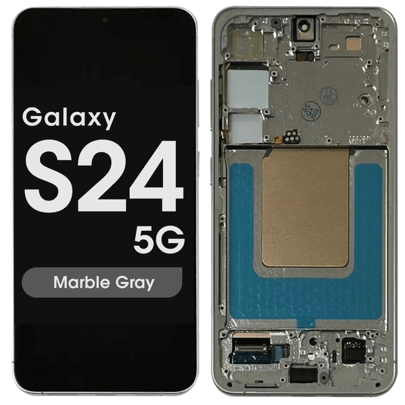 Dynamic AMOLED 6.2" complete display with frame pre‑assembled for Galaxy S24 SM‑S921B in marble grey; service pack quality.