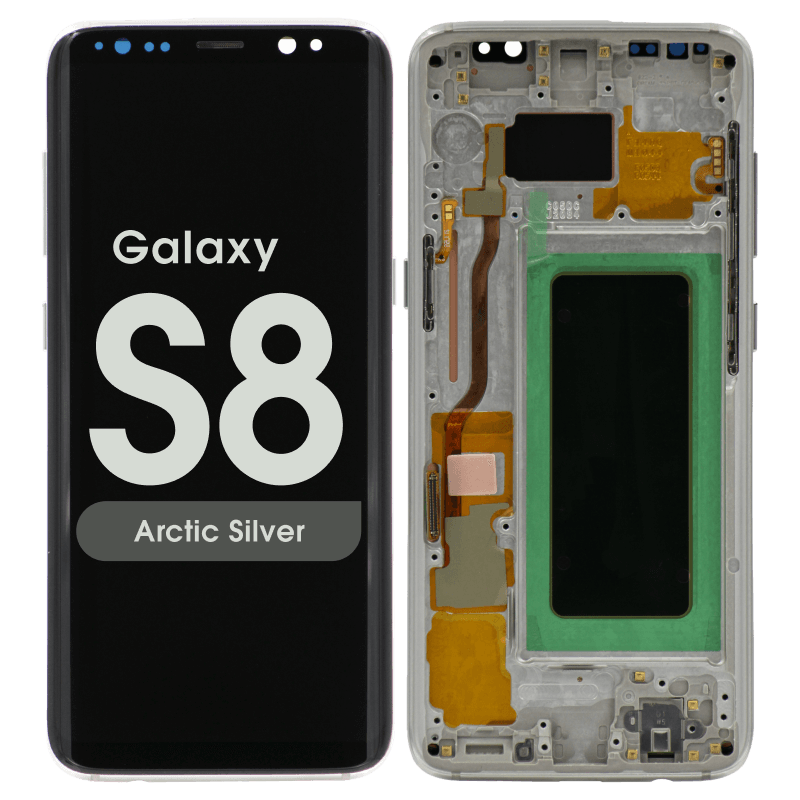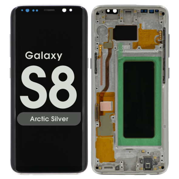 Super AMOLED 5.8" 1440x2960 complete display with frame for Galaxy S8 SM‑G950F in silver; service pack quality.