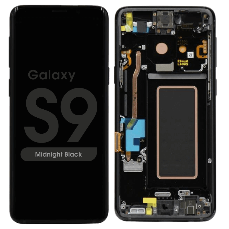 Super AMOLED 5.8" 1440x2960 complete display with frame for Galaxy S9 SM‑G960F in midnight black; service pack quality.
