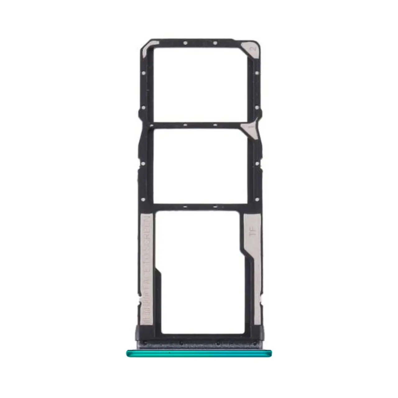 Sim card holder (ocean green) for Redmi 9T; fits model code M2010J19SG; replacement part.