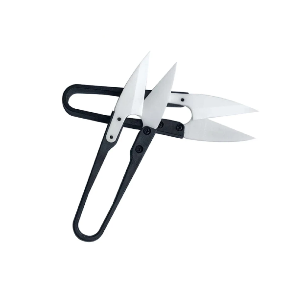 U-shaped insulated ceramic scissors for safe cutting near circuits.